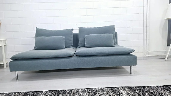 Sohva on hyvässä kunnossa. Päälliset juuri pesty. Päälliset ovat irrotettavat runko myöden. Mitat Leveys 189cm, syvyys 98 cm. Väri tonerud harmaa