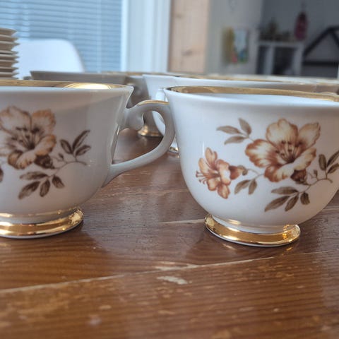 Aidot alkuperäiset Myrna-kahvikupit, 6 kpl, kuin uudet mutta 60-luvulta. Ehjät, ei käytetty. Kolmessa kupissa yksittäinen kukka maalattu eri suuntaan. Kruunuleimat. Hinta yhteensä. Voin postittaa 9eur.