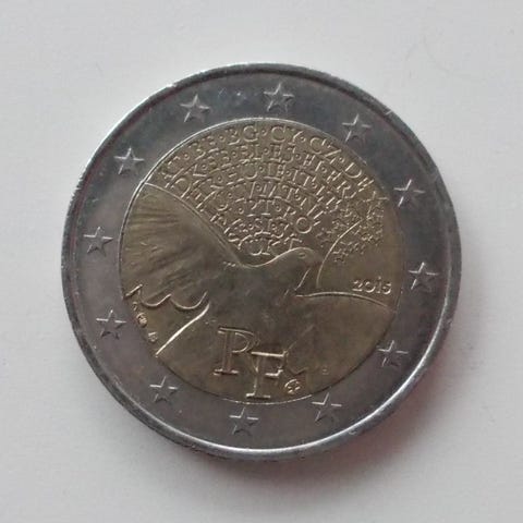 Ranskan 2 euron juhlaraha vuodelta 2015 aiheenaan Ranskan kansallispäivän 250. vuosipäivä