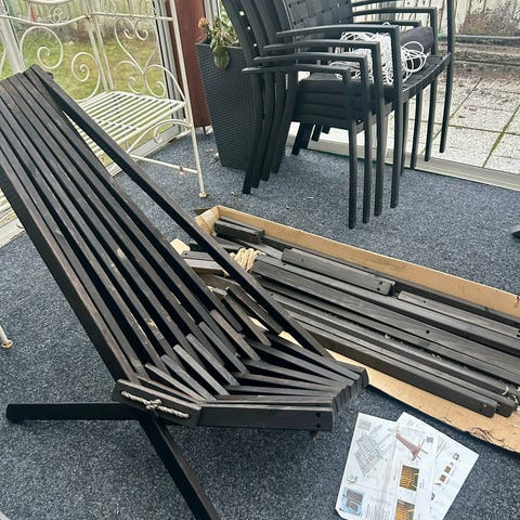 Tuolit on varastoitu mökiltä, jossa olleet käytössä pari vuotta. Ecofurnin hoito-ohjeiden mukaan tuolit kaipaavat puhdistusta ja öljyämistä sekä narujen kiristyksen.