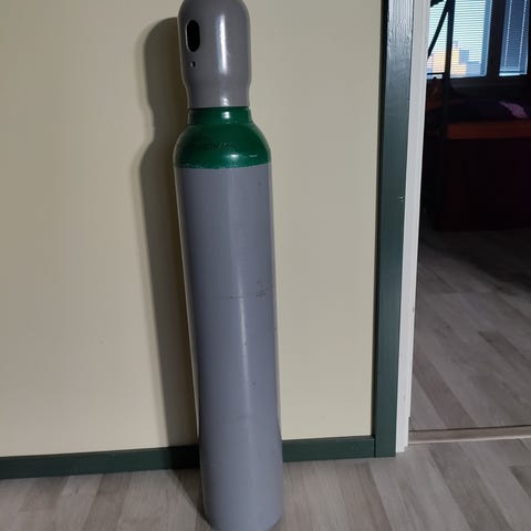Hyvässä kunnossa oleva seoskaasupullo. Leimaa jäljellä 12/28 asti.