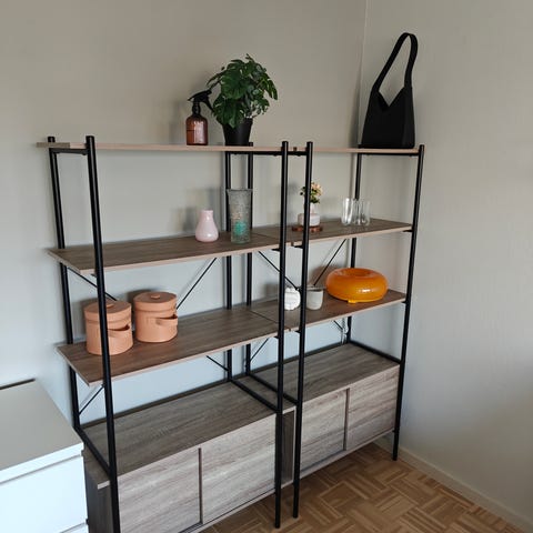 Several shelves for plants, books, or decorative items
