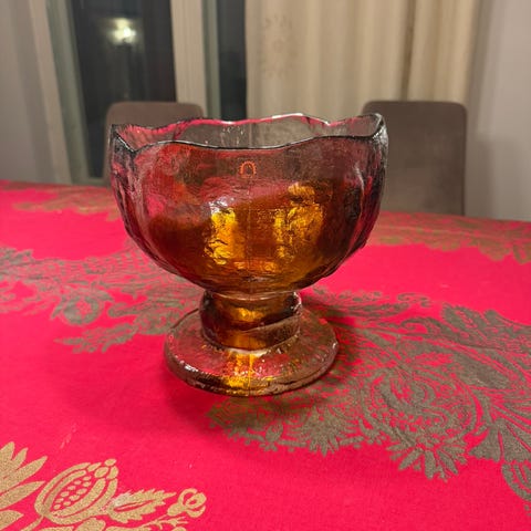Lasinen malja, halkaisija 33,5cm korkeus 10cm. Malja on pyöreä ja sopii koriste- tai käyttöesineeksi.