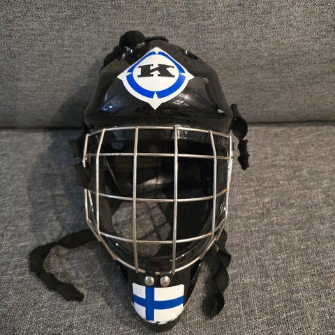 CCM jääkiekkovarusteet maalivahdille sisältäen suojat ja housut. Varusteet ovat mustavalkoiset ja sopivat jääkiekon maalivahdille.