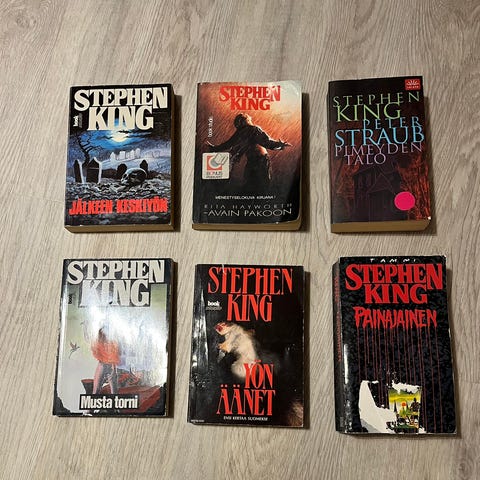 Stephen King romaanit Tukikohta, Pimeä puoli, Kuoleman kortit, Musta torni
