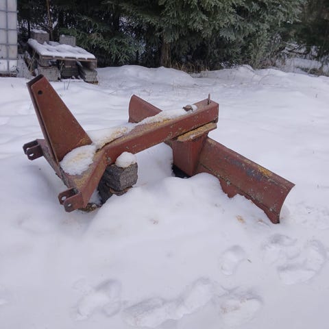 Ympäri kääntyvä, 2,20m leveä hyväkuntoinen lana pieneen traktoriin. Kyytiin nosto. Asiallinen tarjous ok.