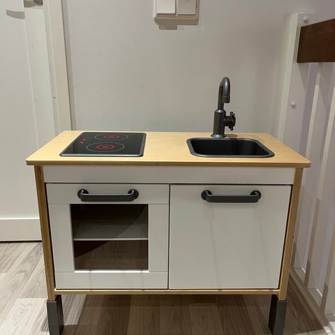 IKEA lasten leikkikeittiö. Keittolevyt toimivat. Tuunattu hieman. Paljon lekkitty, ehjä.