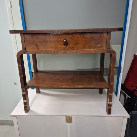Ikäisekseen siistikuntoinen, ei virheetön mutta edelleen toimiva käyttötarkoitukseensa. Naarmuja on jonkin verran pinnassa ja kissankarvoja tarttunut matkaan mukaan. Pohjasta ns. hahlo tukipalkille haljennut muttei vaikuta käyttöön.