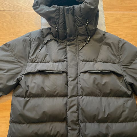 Uudenveroinen, olemattomalle käytölle jäänyt, erittäin lämmin parka. Väri lähinnä savunsininen. Useita taskuja.