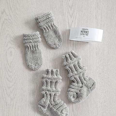 Sopivat n. 0-12 kk ikäiselle: pipon päänympärys venyttämättä n. 42 cm ja sukkien jalkaterän pituus n. 11 cm.
