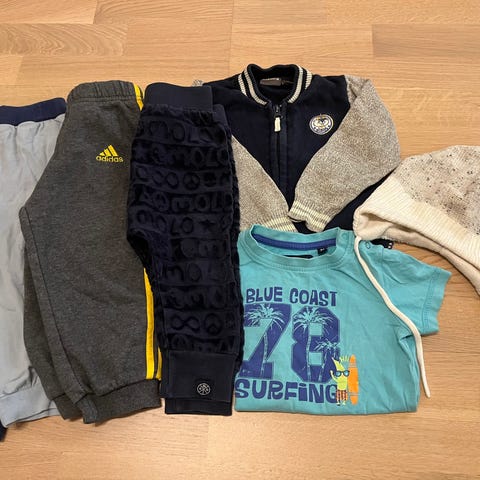 Myydään hyväkuntoinen lasten vaatepaketti. Koko 86. Merkkeinä mm. H&M, Lindex ja Muumi. Yhteensä 15 vaatekappaletta.