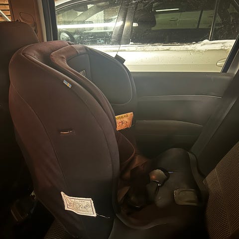 Axkid turvaistuin, joka asennetaan autoon selkämenosuuntaan turvavyöllä. Kolaroimaton. Ollut meillä varaistuimena.