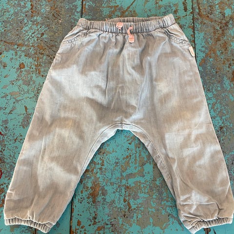 Erinomainen kunto. Uutena ostettu Stockalta ja vain 3-4 kertaa käytetty, (koska oli vahingossa jemmassa eri kaapissa :D ). Koristeelliset taskut. Sopii hyvin vaatetukseksi keväällä, kesällä ja syksyllä esim. ulkoleikkeihin, ovat joustavat ja mukavat. Vähän paksumpaa joustavaa farkkukangasta.