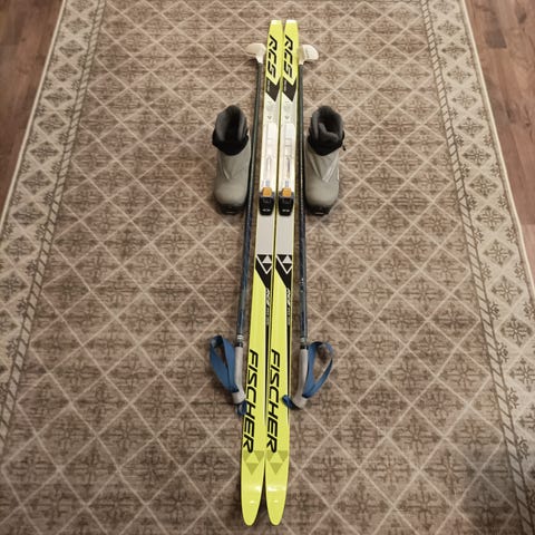 Sukset 205 cm, sauvat 150 cm