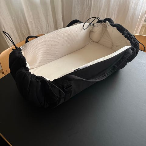 Myydään erittäin hyvässä kunnossa oleva Najell X sleepcarrier. Ostettu 2025 ja käytetty n.3 kk, aina patjansuojuksen kanssa. Ainoa moite on vähän tummentumaa (katso kuva) siinä kohtaa missä pölyä on päässyt verkon sisäpuolelle. Ei haittaa käyttöä.