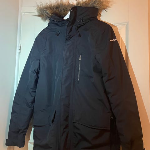 Todella hyväkuntoinen miesten Peakin takki. Ei ole koskaan pesetetty, sillä ei ole kovinkaan paljon käytetty. Pidetty ns parempana takkina. Ei siis ole menettänyt pesussa väriään (on täysin musta, jotkut kuvat vääristää harmaaseen), muhkeuttaan tms. Pinta täysin ehyt ja siisti kaikin puolin.