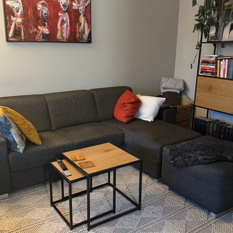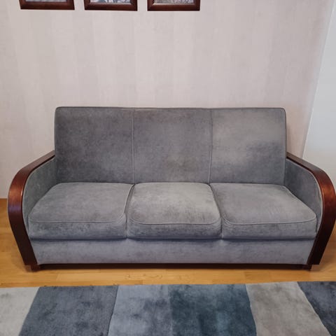 Vähän käytetty, siisti sohva. Väri harmaa. Tyynyt kestävissä, niissä vetoketjut. Istuin korkeus 40cm, istuinsyvyys 60, selkätyynyn korkeus 40cm. Metalliset tummat jalat.