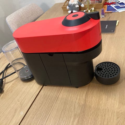 Myydään Nespresso Vertuo kapselikone. Kone toimii hyvin. Mukaan Nespresson kapseleiden kierrätysastia sekä kuvassa näkyvät kaksi pussillista sekalaisia kahvikapseleita. Mukaan saa halutessaan Nespresso karahvin, jonka kaato-osa on hieman lohjennut mutta ajaa edelleen asiansa.