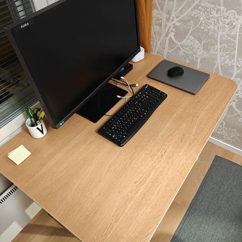 Myydään ikea bekant sähkösäädettävä työpöytä tarpeettomana. Väri on valkoinen. Leveys 120cm, syvyys 80cm. Korkeus säädettävissä. Kätevä verkko pöydän alla johtojen säilytykseen.