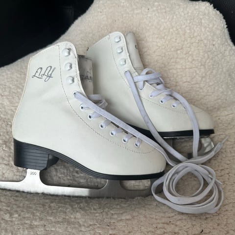 Lasten luistimet, Lily merkkiä, koko 33, valkoinen väri. Ostettu uutena kaupasta ja yhden talven oli muutamia kertoja lapsella päällä. Hyväkuntoiset, pieniä mustia viiruja valkoisessa pinnassa käytöstä vain.