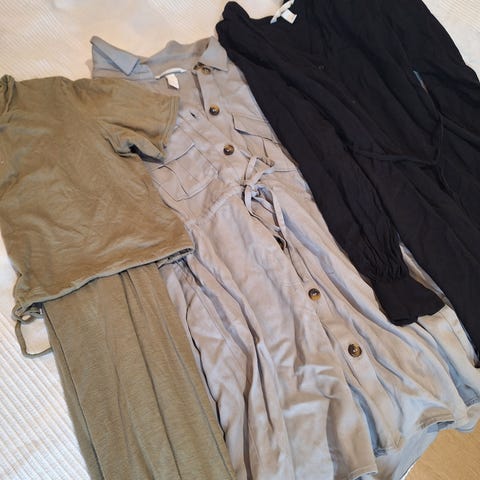 Kolmet odotusajan housut noin s kokoiselle. Vaaleat h&m farkut koko xs, mustat suorat joustavat housut h&m koko s ja mustat nosh olohousut koko s. Ehjät ja siistit seuraavalle