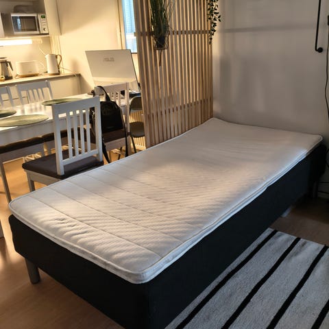 Hyvässä kunnossa oleva 100cm x 200cm harmaa runkopatja ja petauspatja. Nuodettava.