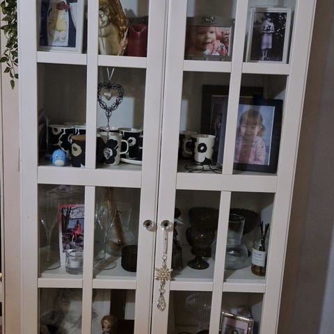VARATTU Täyspuinen, laseissa koristekalvot. Naarmuja, ruuvinreikiä, käytönjälkeä on. Maalaamalla nätti, tai jos rustiikkinen tyyli sopii niin ihan tällaisenaankin.