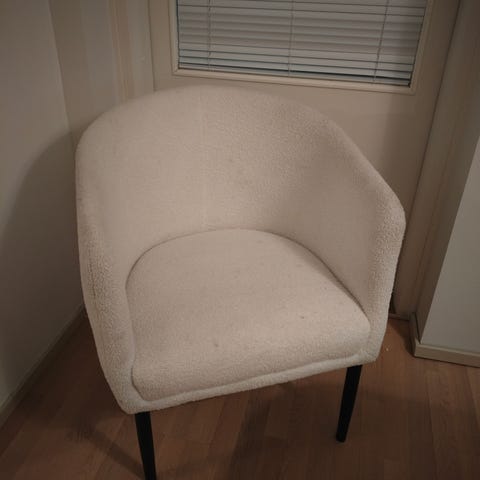 Myydään Jyskistä ostettu Hundested nojatuoli. Luonnonvalkoinen teddykangas, tammen väriset jalat. Täysin ehyt, mutta istuinosassa osittain kangas tummentunut, näkyy jossain valossa. Hp 50e. Ovh 229e. Voi käydä katsomassa ennen ostopäätöstä. Ritaharjussa. Koira talossa, mutta ei ole ollut nojatuolissa!