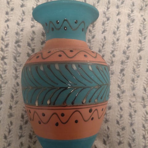 Pieni maljakko, korkeus noin 18 cm, halkaisija leveimmillään noin 5,5 cm suulta 3,5cm,