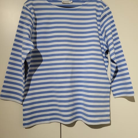 Marimekko Ilma tasaraitapaita on valmistettu puuvillasta ja siinä on punavalkoiset raidat. Paita on naisten koko L. Materiaalina puuvilla tarjoaa hengittävyyttä ja mukavuutta käyttöön.