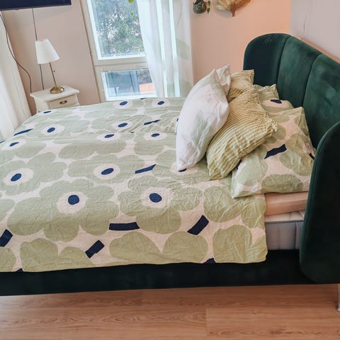 Kaksi vuotta käytössä ollut Ikean laadukas patja. Pinta pesty ja patja siisti.