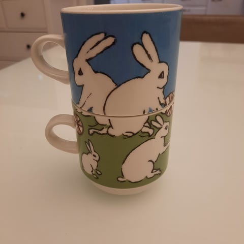 Kaksi settiä Arabian kuppileikki pingviinit mukeja.