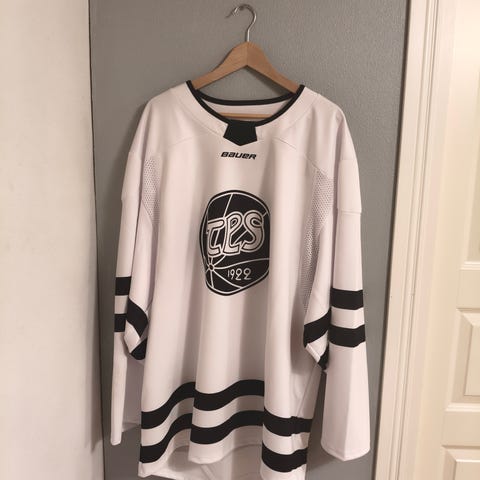 Kauden 2024-25 playoffeissa käytössä ollut kotipaita. Muutamia kiekon iskemiä löytyy, signeeraus sekä asiaan kuuluvat stämpit.
