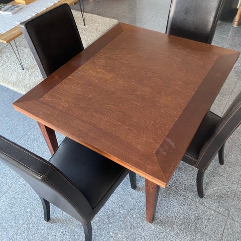 Tukeva ja siisti rustiikkinen ruokailuryhmä. Kansi uudelleen lakattu.