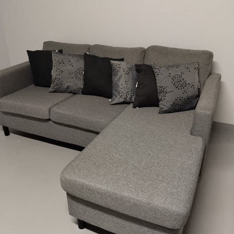 Iso kauniin harmaa divaani sohva. Tässä helposti löhöää koko perhe. Myydään tilanpuutteen vuoksi. Ei lemmikkejä. Nouto Saunakallio