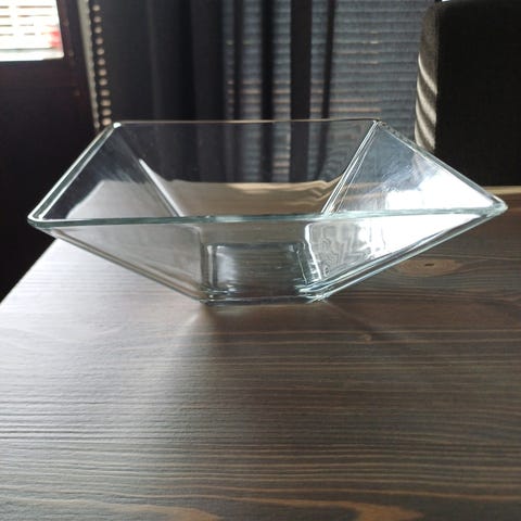 Jalallinen lasinen malja/ kulho. Korkeus 20 cm, halkaisija 23,5 cm ylhäältä, alhaalta 12 cm. Hedelmille, jälkiruokien tarjoiluun...