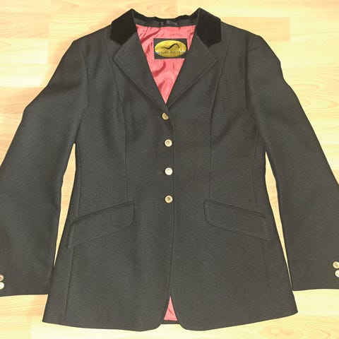 Pieneksi jäänyt Cavallo ratsastustakki joka toki toimii muuhunkin ulkoiluun. Asiallisessa kunnossa. Väri valosta riippuen musta/ hyvin tummansininen.