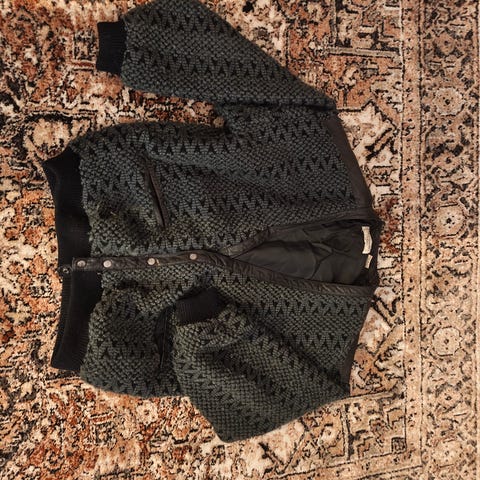 Mummon vanha aamutakki, ajalleen uskollisesti puolipitkillä hihoilla. Päällä kuvassa L/XL käyttävällä, ei siksi ehkä parhaimmillaan 🙈 Väri vaihtelee valosta riippuen sähkönsinisestä turkoosiin. Pieni reikä olkasaumassa, ks. kuva. Pitäisi itse paitamekkona tai takkina, jos olisi sopivampi. Ei tuoksuja. Hieno vanha vaate, jonka soisi jatkavan vielä elämää ❤️