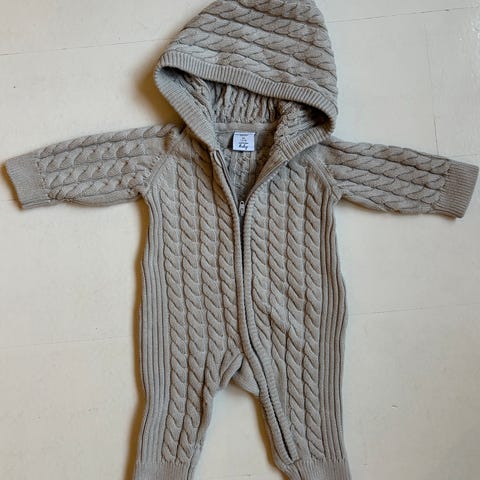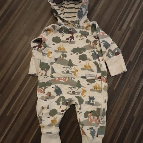 Puuvillainen haalari paksumpaa puuvillaa, sisältä pehmeä. Ostettu uutena ja käytetty vastasyntyneellä 2 kk syksyllä 2025.