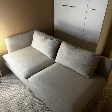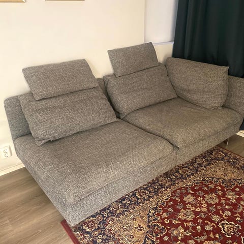 IKEA Söderhamn sohva, vaaleanvärinen Gunnared beige kangaspäällyste. Sohvassa on irrotettavat päälliset. Sohvassa pieniä käytön jälkiä kankaassa, lähtee luultavasti päälliset pestessä. Ehjä. Ei kuljetus mahdollisuutta.