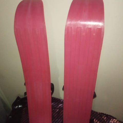 SportMe mini trick skis (minisukset). Suunniteltu lapsille ja nuorille laskuharjoitteluun. Kiinnitetään siteillä kenkiin. Pidetty siistissä kunnossa, vaikka pohjissa näkyy kulumaa.
