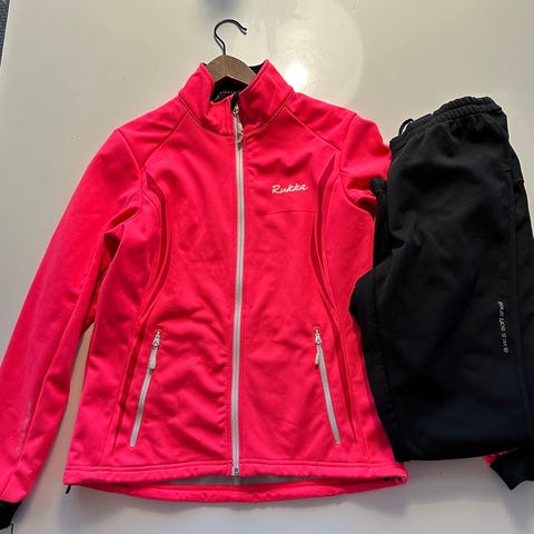 Rukka hiihtopuku henkselihousuilla. Väri lila.
