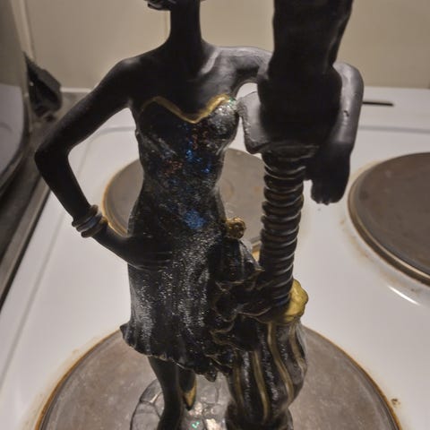 Erilaisia patsaita ja koriste-esineitä: pää 10€ Daivd patsas 10€ pylväspatsas 10€ urheilijat savitaulu 10€ saviruukku jalustalla 2€ rautataulu 1€ viinikannu 10€
