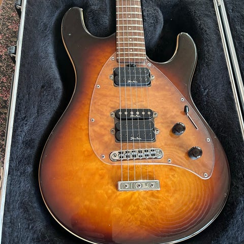 Kitaraa on soitettu. Naarmua löytyy vyöpuolelta, mutta ei silti pahempia dingejä. Kaulassa on pari osumaa myös muttei mitään soittoa haittaavaa.
