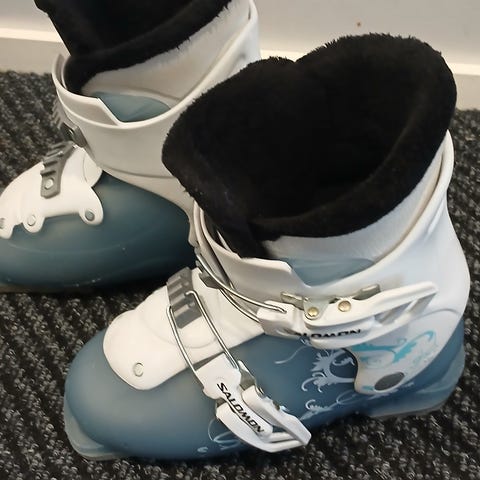 Pieneksi jääneet, paljon käytetyt Salomon laskettelumonot. Käytönjälkeä. Sisämitta noin 19cm.