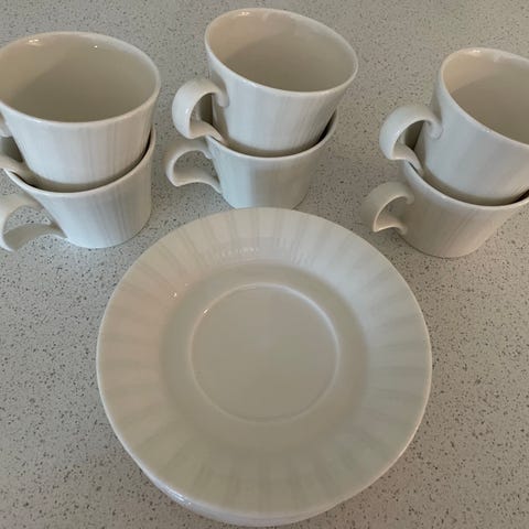 Arabia Lumi -sarjan kahvikupit ja kuppien asettilautaset. Olleet erittäin vähällä käytöllä, kunto lähes uuden veroinen.