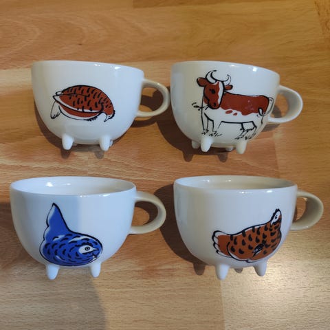Pii-Pot Ky:n valmistamat, uudet käyttämättömät mukit/kuksat. Korkeus n. 6,5 cm ja vetoisuus 1,5 d