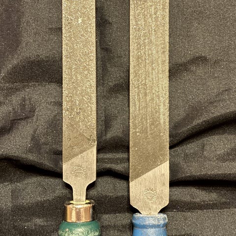 Kaksi antiikkista puukahvaista Viiala Finland viilaa.