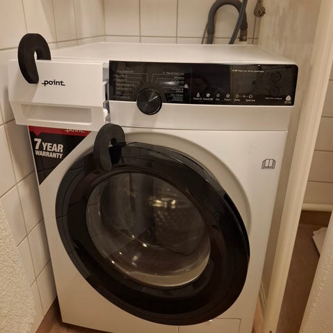 Pyykkikone pesee, linkoaa ja kuivaa esim. parisängyn petarin putipuhtaaksi.