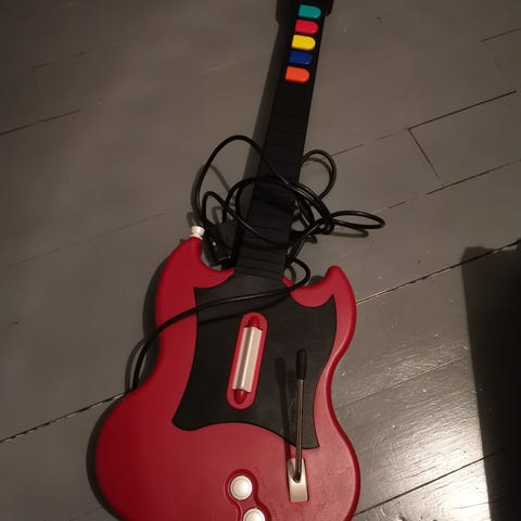 Kuvan mukainen täysin toimiva guitar hero kitara ps 2 konsolille. Toiminta testattu. Vastaanotin mukana. Postitus onnistuu tarvittaessa.